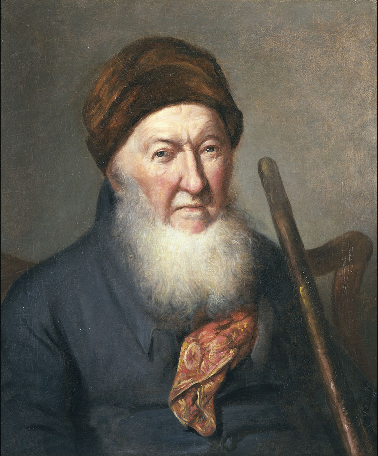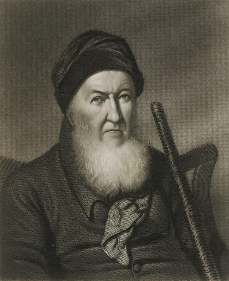 Peale - "I paid him a visit in July, 1828, and his strikingly venerable appearance was calculated forcibly to remind one of the patriarchal times. He was clad in a loose morning gown, and a white cap somewhat resembling a turban, and his highly interesting countenance, his sightless but expressive eyes and long white beard indicated an age not commonly allotted to mortals. To an inquiry respecting his health he replied,
