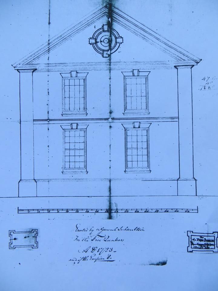 a drawing for the Free Quaker Meeting House, with Timothy Matlack notation at the bottom.
