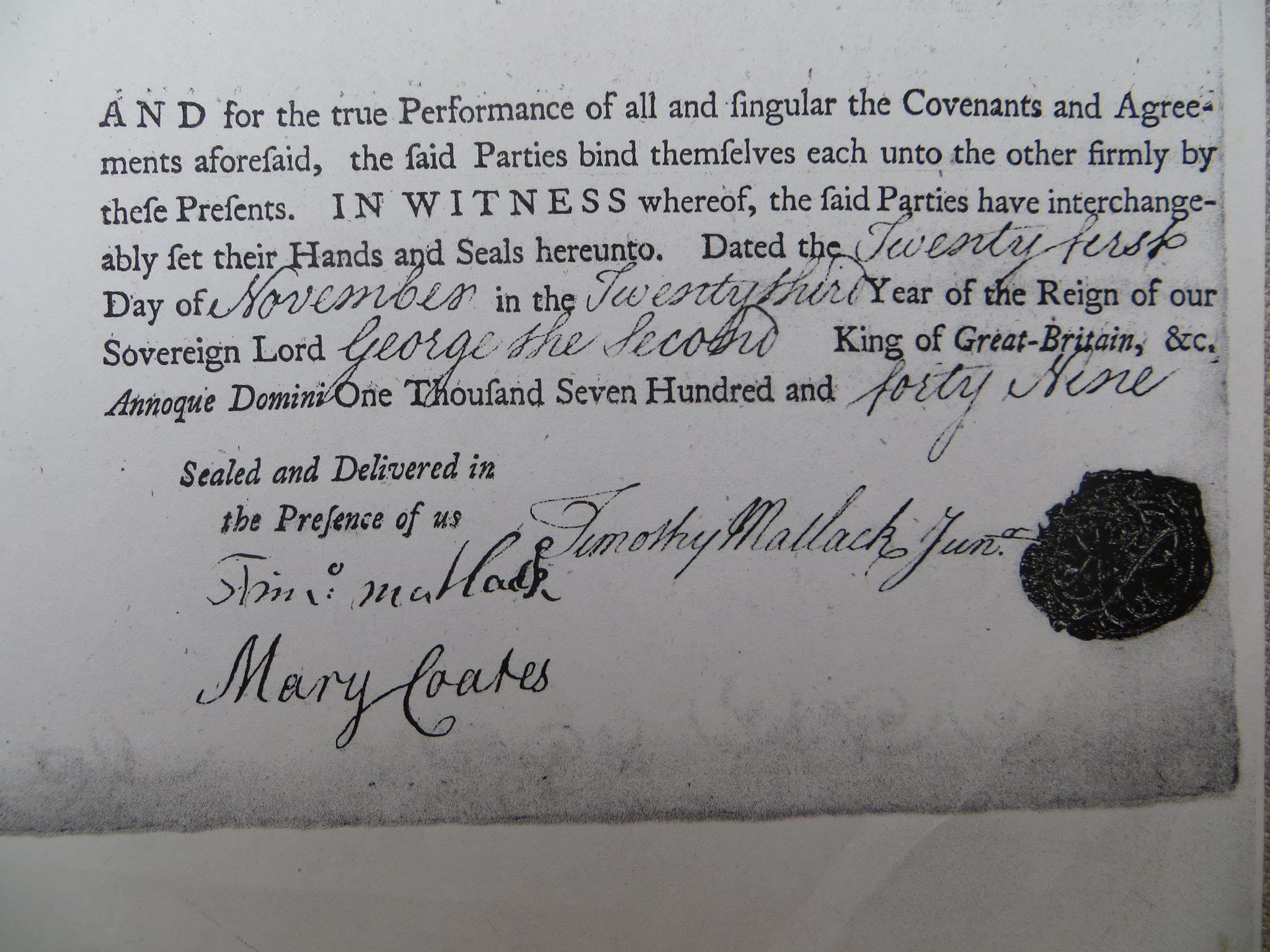 * Timothy Matlack (Sr.) was named after his uncle Timothy Hancock, his mother's brother. Timothy Hancock came with his sister from Brailes, Warwickshire, England and settled on a hundred acre tract of land in Chester Township, Burlington County, New Jersey, adjoining the plantation of William Matlack.