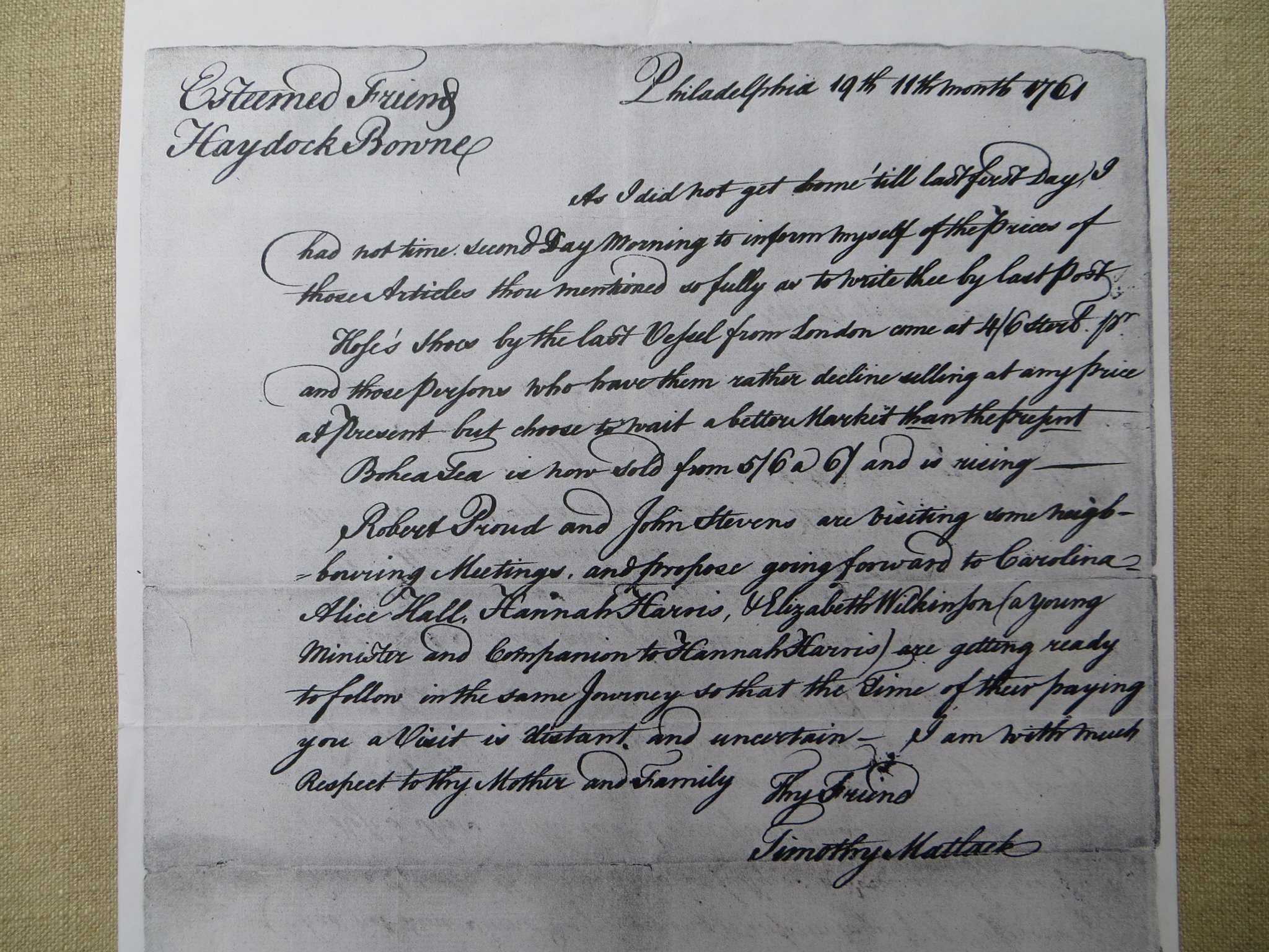 --- (2) Timothy Matlack Sr. (1m. Mary Haines 1720, 2m. Martha Burr Haines 1730) b. 1695, d. 1752