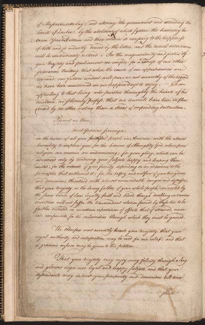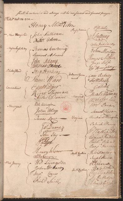The Signature Page from the First Contintental Congress' petition to King George II - October 26, 1774