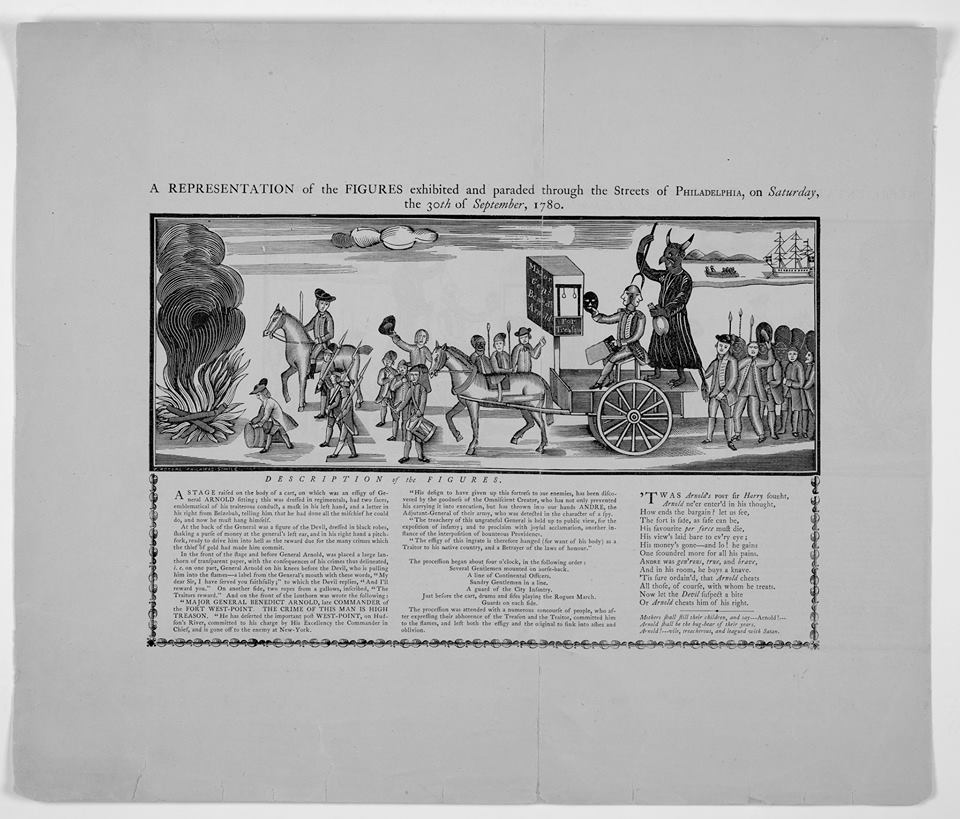 "After Benedict Arnold's treason was discovered, Philadelphians burned him in effigy.